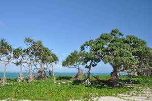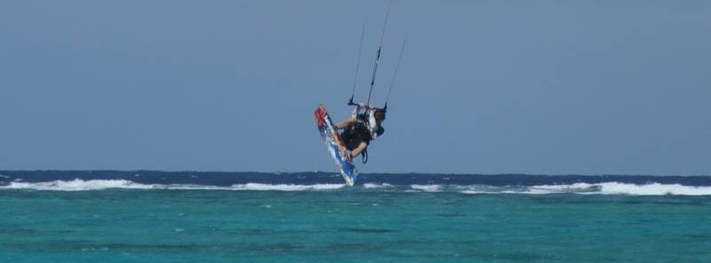 The kitespot was very nice too. However, next time we would make sure to get a lift with a boat there in the morning. When we arrived there with all our gear we first had a rest in our hammock and enjoyed the beautiful scenery. After we launched our kites and enjoyed kiting on this unique place. The wind is very onshore here, which didnʻt bother me much but freaks out kelly. The water was very flat because it was protected by a reef about 100 meters upwind. Also the clarity of the water was fantastic. You can see every coral underneath you while kiting. The depth of the water was from around waist deep to about 1.5 meters. We had around 20 Knots of wind for three days and could therefore fly our 8m kite.